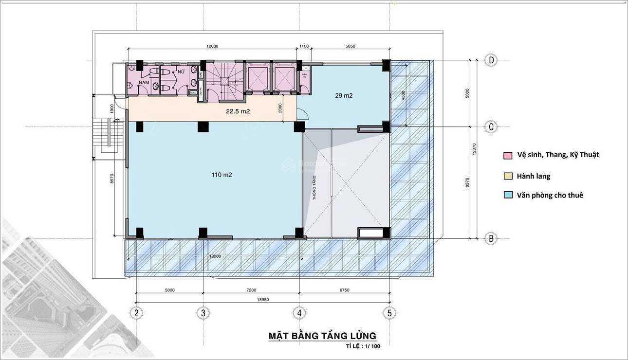 DT sàn 5000m, 15 tầng và 2 hầm lớn.